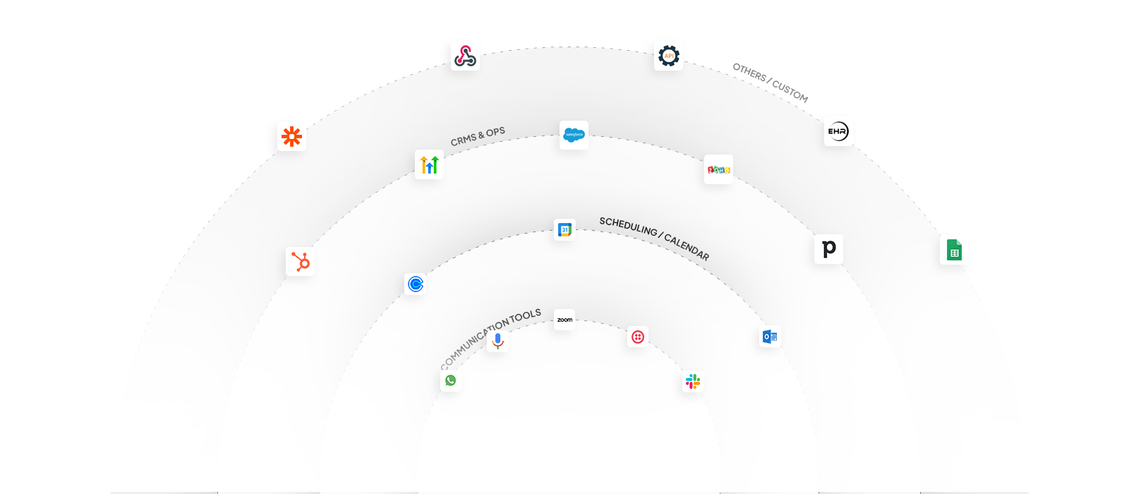 CRMs, calendars, and custom APIs — we connect everything